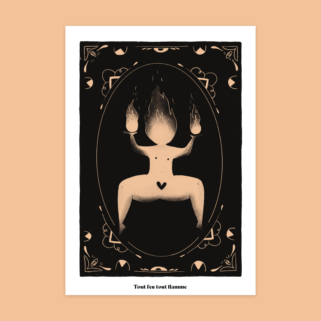 Une illustration qui rappelle les cartes de Tarot et illustre l’expression « tout feu, tout flamme »